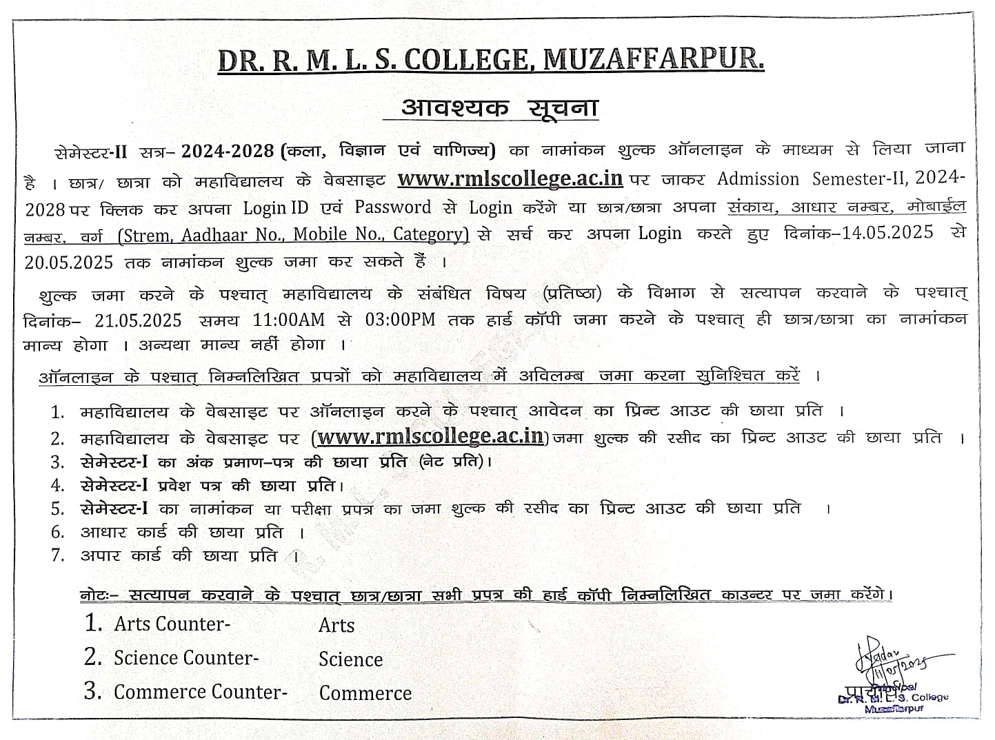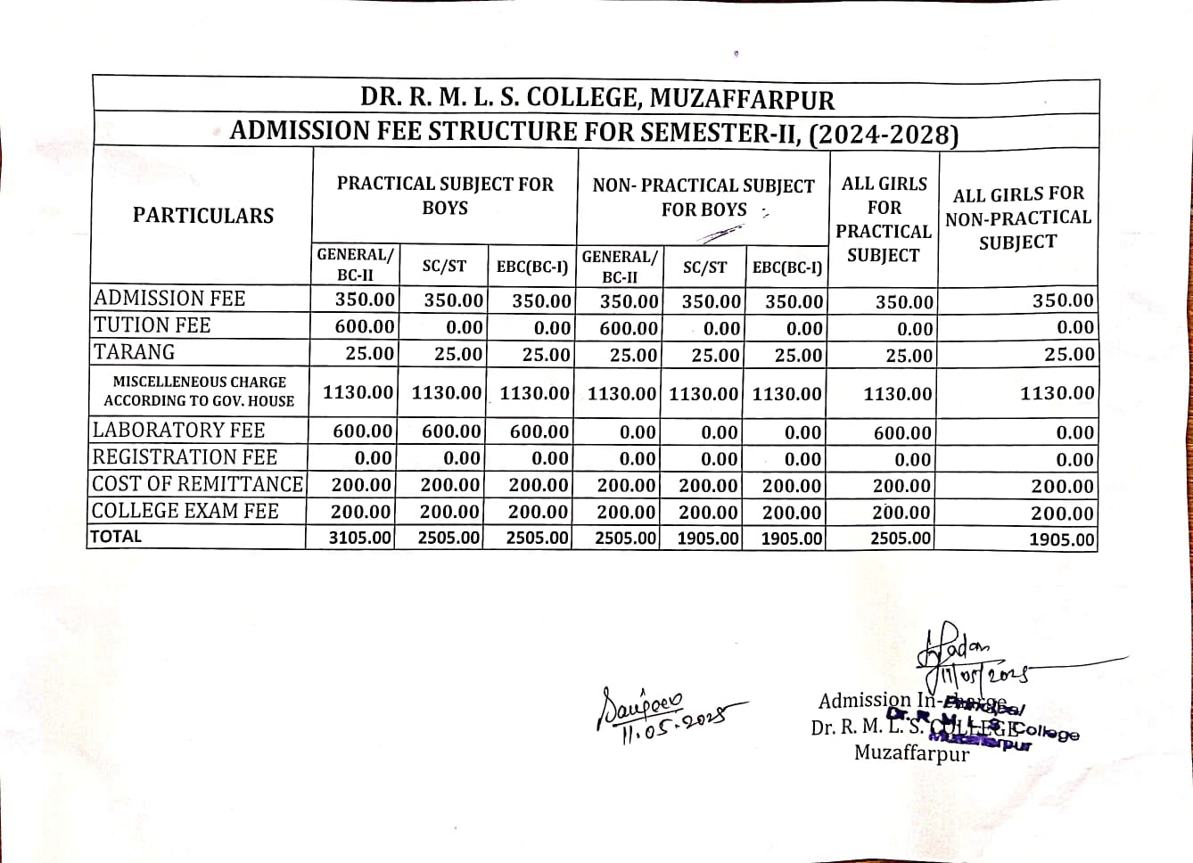UG SEMESTER-II ADMISSION 2025 (2024-2028)